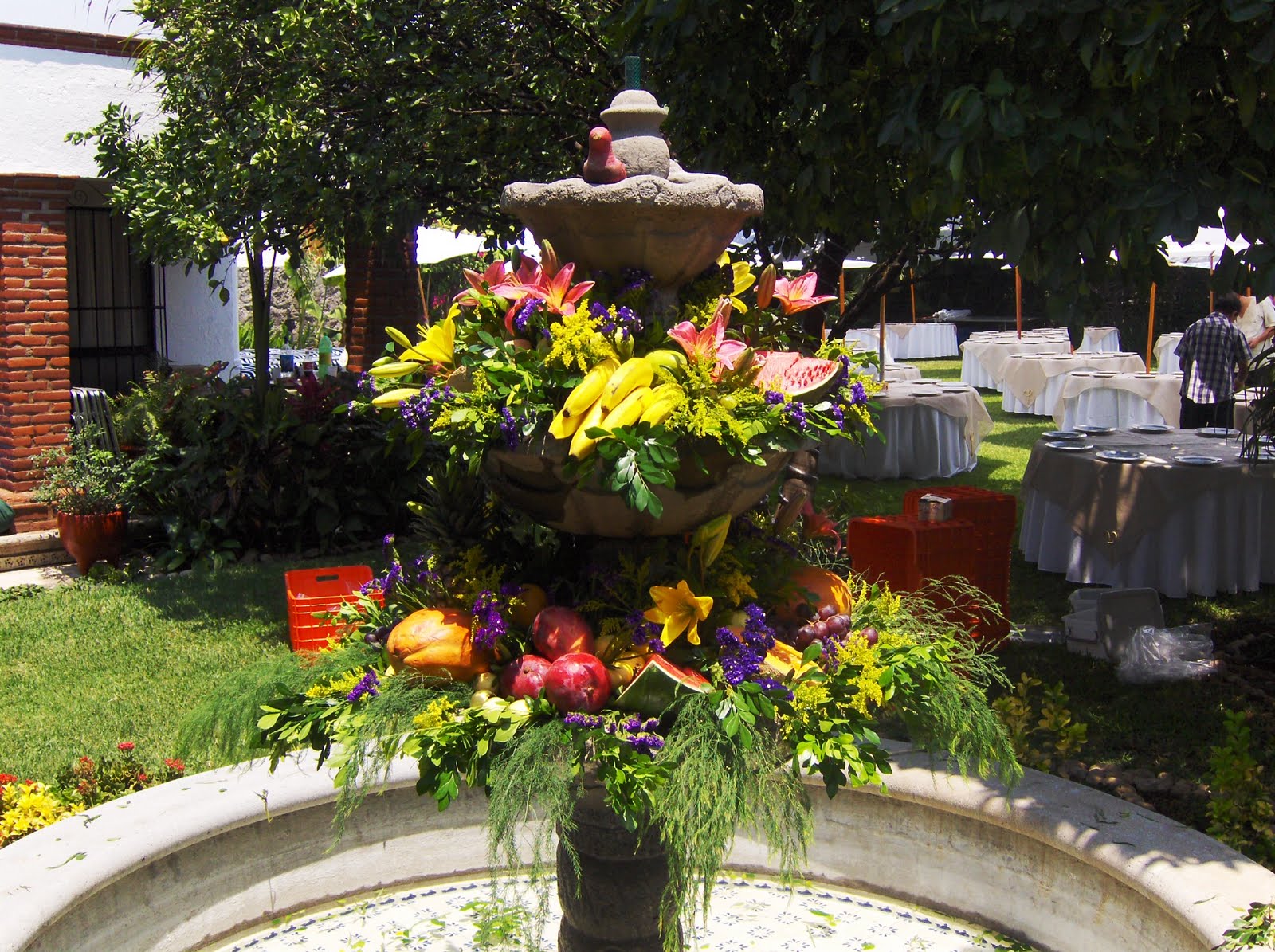 Si en tu recepción hay una fuente puedes decorarla con frutas de la temporada una idea muy original.